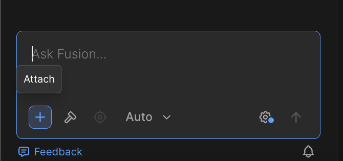 In the Fusion chat, click on the “+“ icon to upload any files you need with a prompt that looks something like - “add this file in my code section“