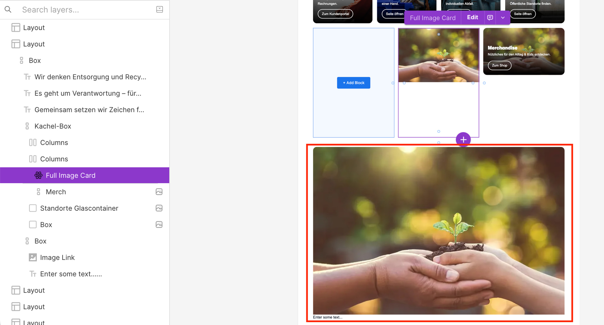 Purple: Full Image Card symbol, Red: regular box with position-absolute image in a homepage